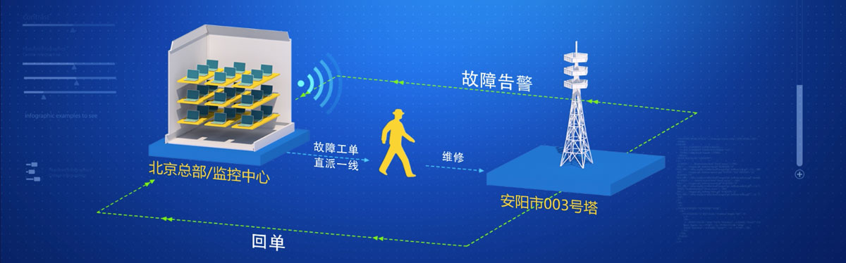 中國鐵塔建立全方位的電力保障服務(wù),在提供電力引入的基礎(chǔ)上,通過蓄電池備電、油機發(fā)電等方式,在外市電停電的情況下為客戶提供后備電力續(xù)航服務(wù),保障客戶設(shè)備持續(xù)穩(wěn)定運行。目前中國鐵塔具備動力配套設(shè)施的站址已全部安裝動環(huán)監(jiān)控,第一時間采集停電信息上傳運維監(jiān)控平臺,運維監(jiān)控平臺根據(jù)機房(機柜)內(nèi)蓄電池續(xù)航時長,動態(tài)派發(fā)發(fā)電工單。遍布全國各個區(qū)縣、鄉(xiāng)鎮(zhèn)的維護人員,第一時間響應(yīng)發(fā)電需求,確保機房7*24小時不間斷供電。